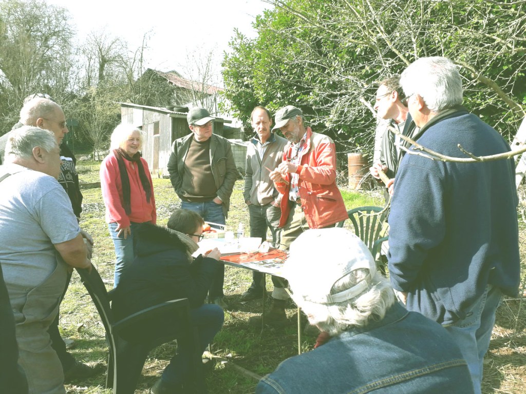 On a organisé comme annoncé, une séance de formation à l’entretien, la taille et greffage des arbres fruitiers. Pierre, l’organisateur de cette rencontre et nouveau président de l’AJCP, fait partie de l’association des « Croqueurs de pommes de Lorraine » depuis plus de 15 ans, Ces derniers sont des passionnés des variétés anciennes de fruits, bien adaptées à notre terroir. Elle a eu lieu le samedi 23 mars 2019, de 9 à 11h aux jardins Sud. La même opération n’a pu avoir lieu en 2020, compte tenu du confinement. Le 4 février 2021 a eu lieu une séance d’initiation à la taille des arbres fruitiers dans le verger Nord avec 5 jardiniers. Une autre séance plus axée sur le greffage aura lieu à effectif réduit (6 personnes maxi) et en plusieurs séances en fonction du nombre de demandeurs.
