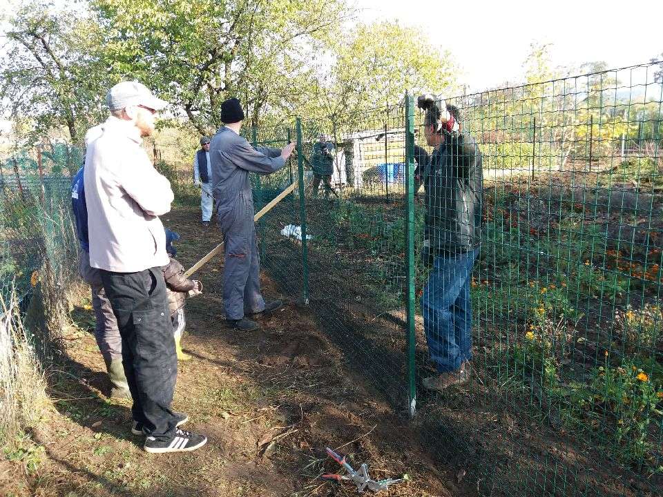Dés octobre 2018, des clôtures commencent a être posées également aux jardins sud. 50 m ont été réalisées, avec 1 portail commun pour 2 parcelles.