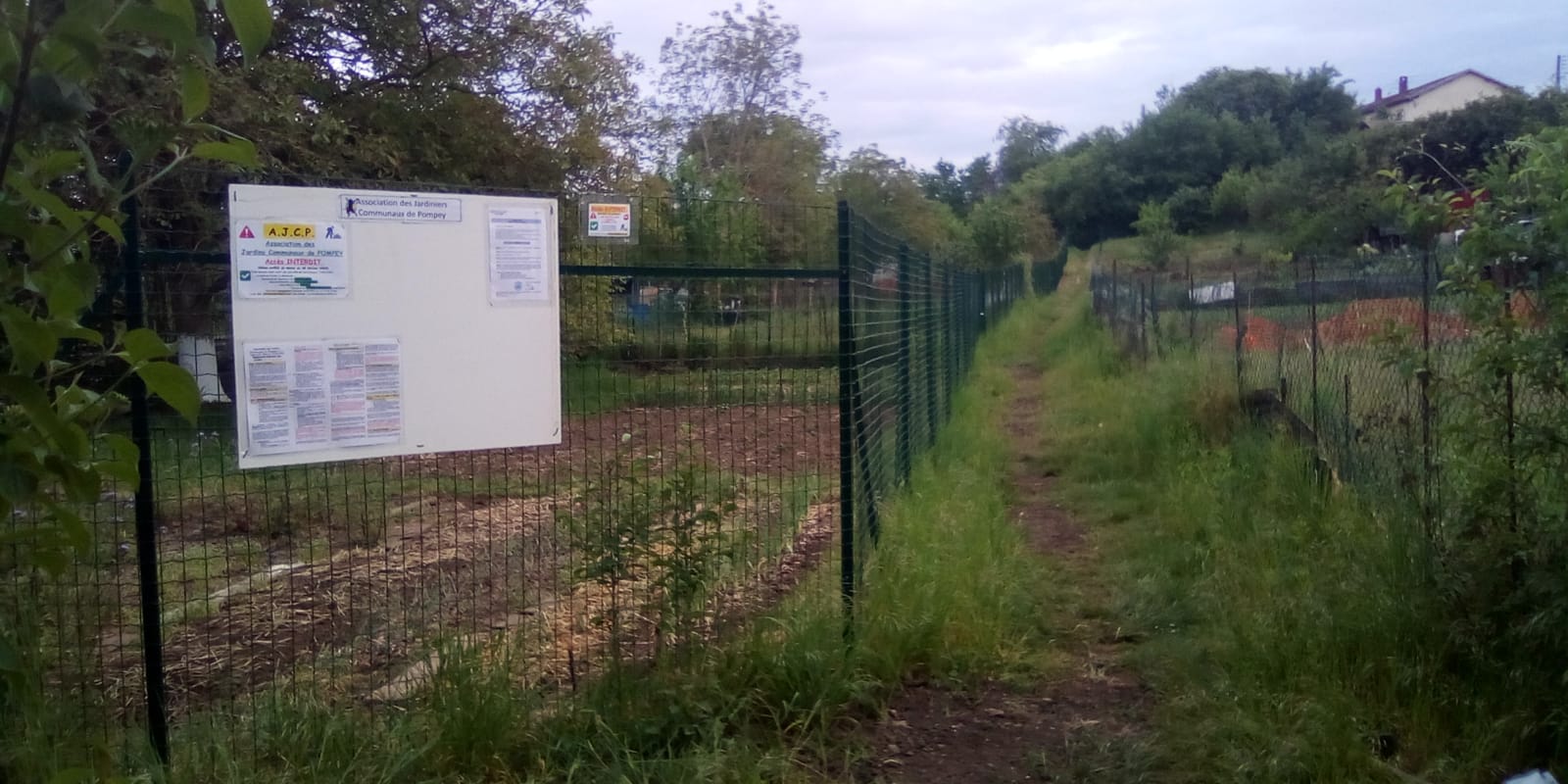 La première clôture a été mise en place en 2008, aux jardins nord, dans un soucis de sécuriser les parcelles et de limiter les vols et dégradations. Elle a pu être réalisée par un groupe de jardiniers motivés et des matériaux fournis par la mairie de Pompey. Au total ce sont 250m de clôture qui ont ainsi été posé, ainsi qu’un grand portail et 8 petits portails.