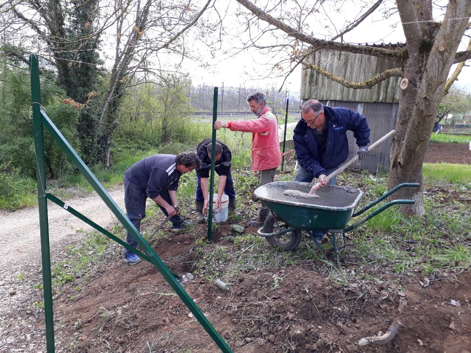 En 2019, c’est 100 m de clôture posé ainsi que 3 portails sur 4 parcelles. En moyenne ce sont 4 jardiniers minimum qui participent activement à ces chantiers. Des affiches plastifiées ont été disposées aux entrées de jardin pour renseigner sur l’accès réglementé aux jardins et les contacts possibles avec l’association pour accéder à une parcelle.