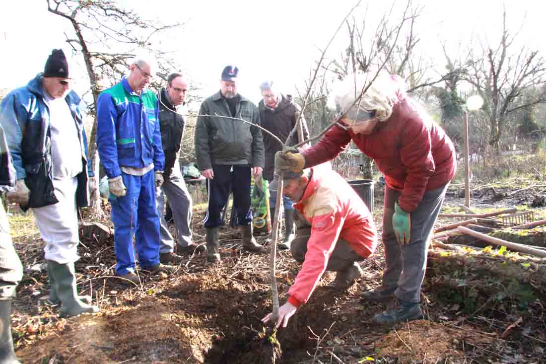Au jardin nord, à proximité du captage d’eau, a été planté fin 2021, 6 arbres fruitiers provenant de notre pépinière, donc des fruitiers greffés par nos soins en mars 2020 et 2021.